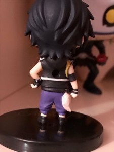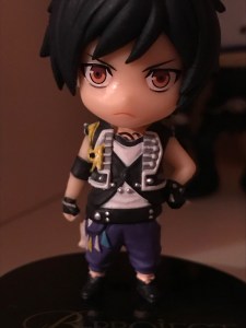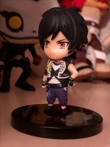 this small figure of Goushi…which didn’t cost 99.00+ dollars. It captures his grumpiness just perfectly, and the outfit is pretty much accurate and detailed. Goushi is small, he fits into my palm and then he has a base. He kind of reminds me of a chibi.