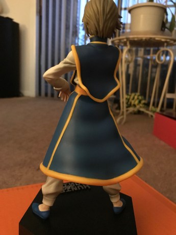 others. The figure stands about 7.6 inches tall. I love the blue and gold/yellow of his tabard/tunic outfit, it is very accurate to the one seen in the anime. Not only does it stand out in the anime, but it really stands out on the figure. Just like the character, his facial expression is quite serious, and there is a whole story as to why Kurapika is so serious.