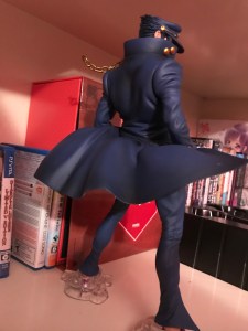 right. My Jotaro has a bit of difficulty standing up, but I would say it’s user error. LOL. I’ve seen extremely positive reviews for this figure, and that was another reason I decided to get this Jotaro. There were no complaints on the way to get him standing okay without falling backward.